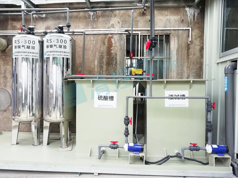 本项目执行的电镀标三标准,对镍和磷的要求很高,镍≤0.1mg/L、总磷P≤0.5mg/L,由于化学镍中存在次磷酸和亚磷酸,这两类物质对在项目前段采用清控环保的次亚磷去除剂对次亚磷进行深度的处理,将总磷降低0.5mg/L,再采用RS300对镍进行深度的吸附,确保出水总镍<0.1mg/L。