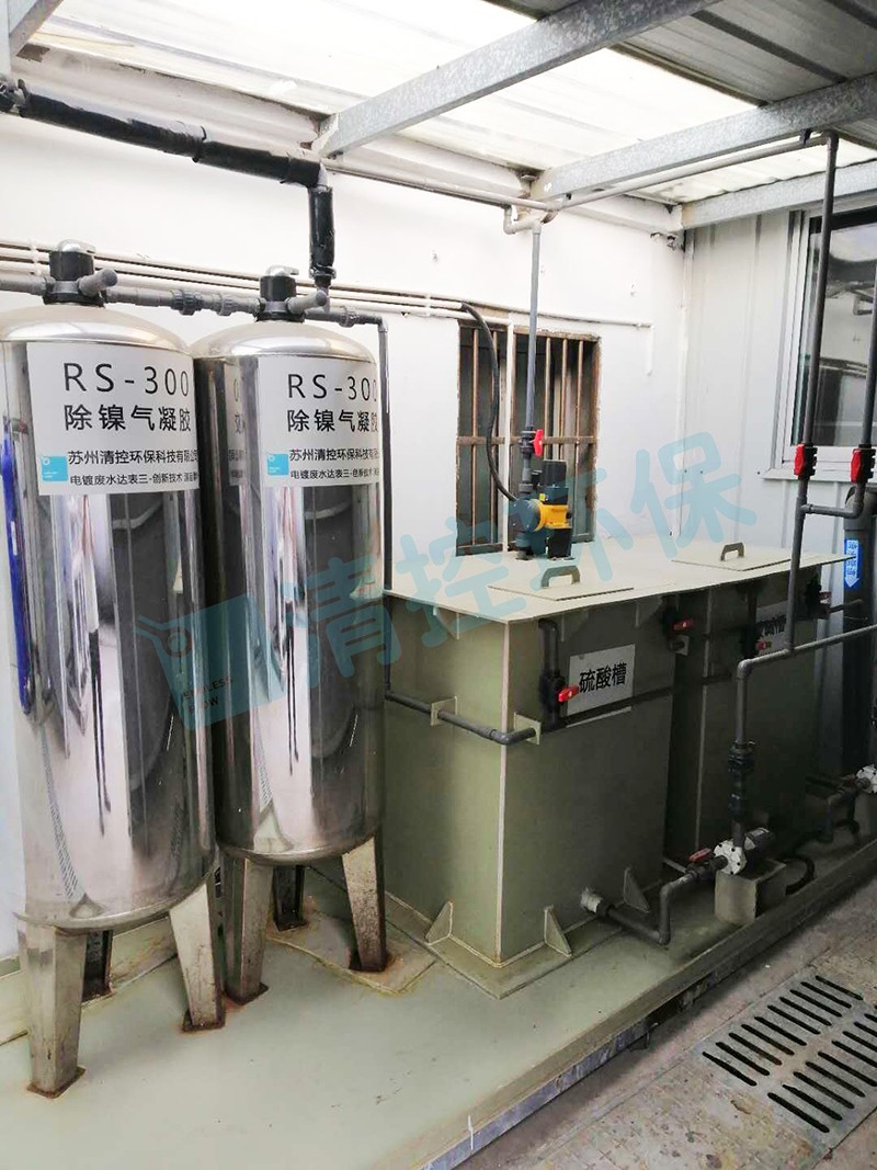 本项目执行的电镀标三标准,对镍和磷的要求很高,镍≤0.1mg/L、总磷P≤0.5mg/L,由于化学镍中存在次磷酸和亚磷酸,这两类物质对在项目前段采用清控环保的次亚磷去除剂对次亚磷进行深度的处理,将总磷降低0.5mg/L,再采用RS300对镍进行深度的吸附,确保出水总镍<0.1mg/L。